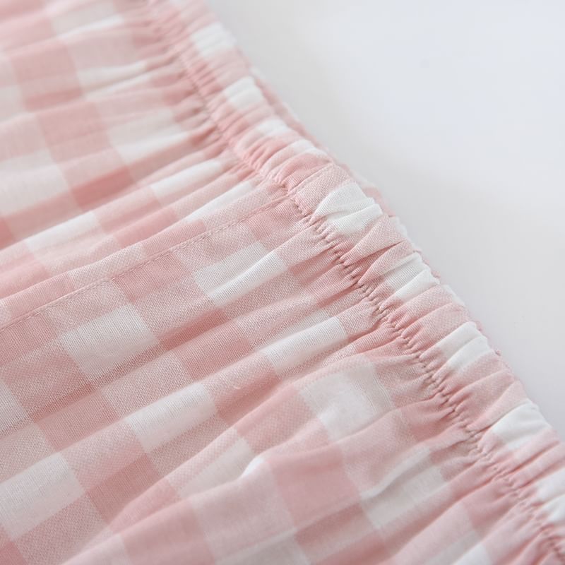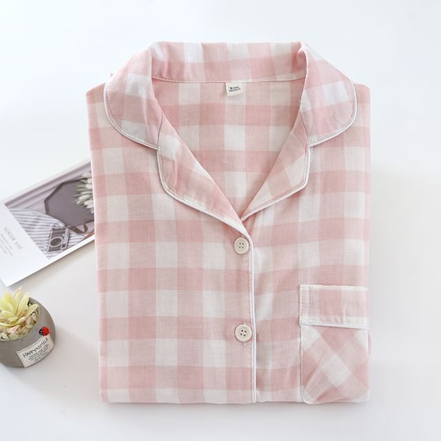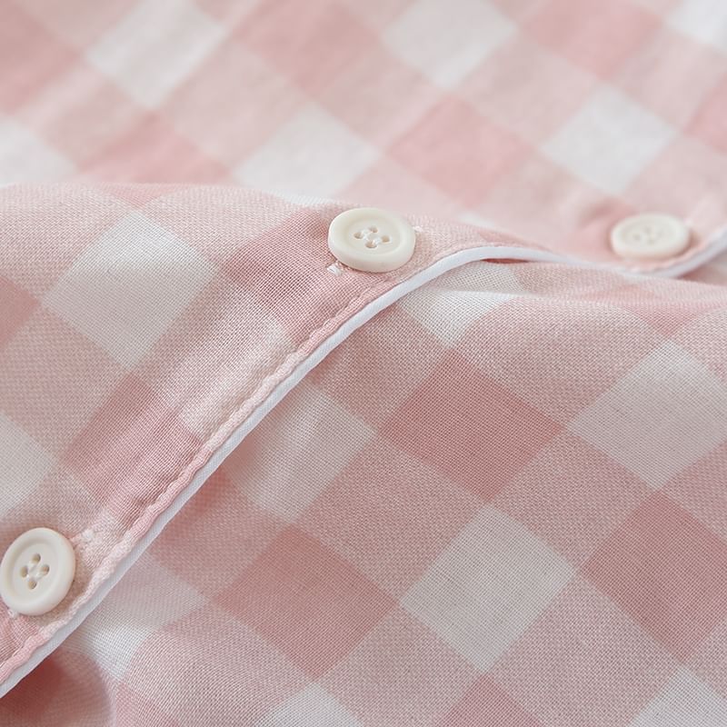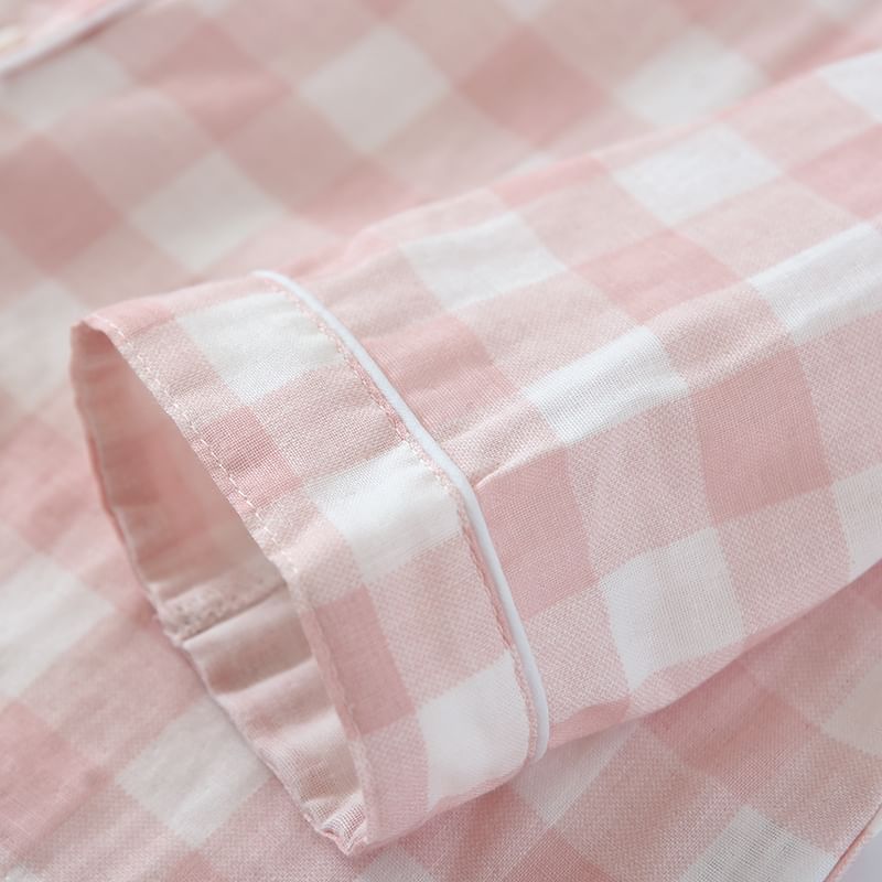 Couple Matching Pajama Set: Long-Sleeve Collared Plaid Shirt + Elastic Waist Straight Leg Pants