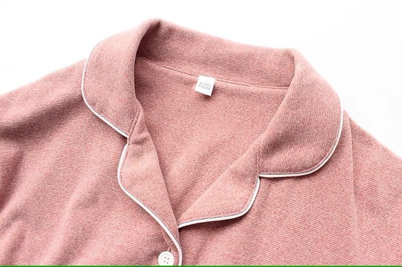 Couple Matching Pajama Set: Long-Sleeve Lapel Collar Contrast Trim Button-Up Top + Pants (Various Designs)