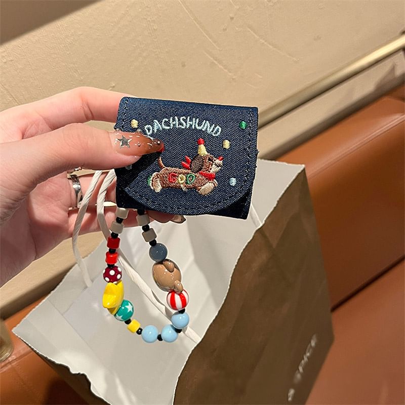 Dog Embroidered Denim Strap AirPods / Pro Earphone Case Skin