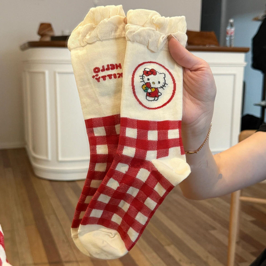 Cartoon Plaid Bubble Lace Kitty Tube Socks