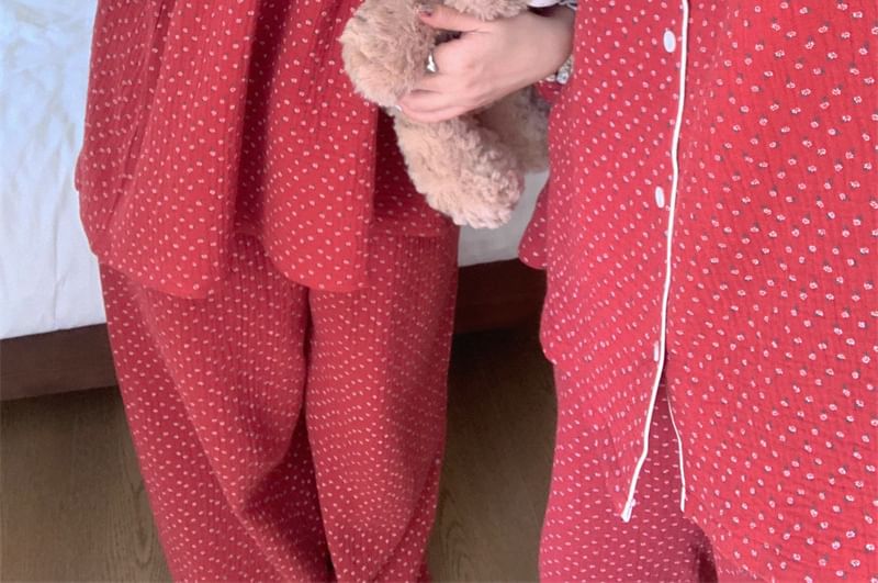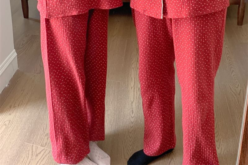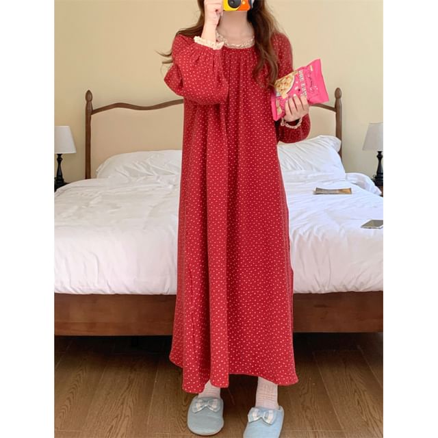 Couple Matching Long-Sleeve Dotted Pajama Top / Dress / Set
