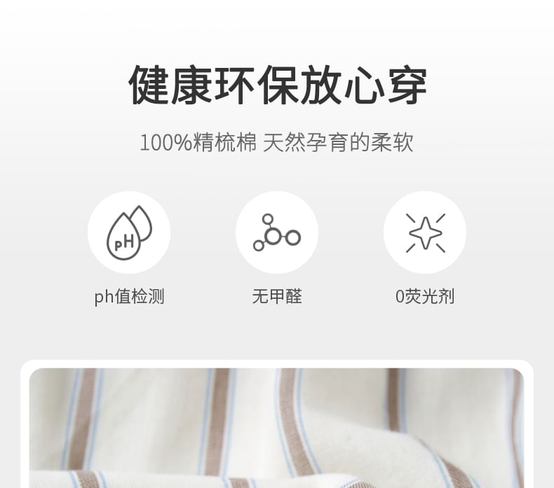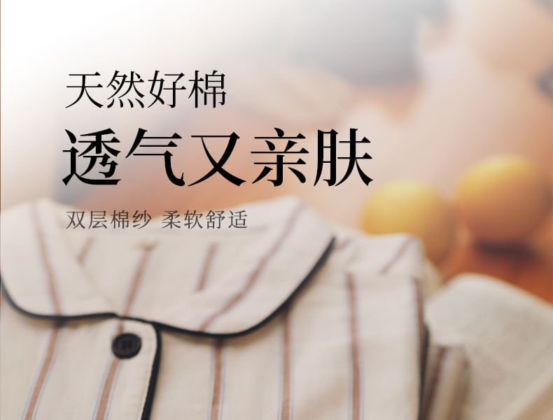 Couple Matching Pajama Set: Long-Sleeve Collared Striped Cartoon Embroidered Button-Up Top + Pants