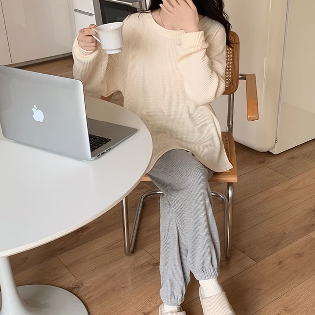 Couple Matching Pajama Set: Long-Sleeve Plain Top + Pants