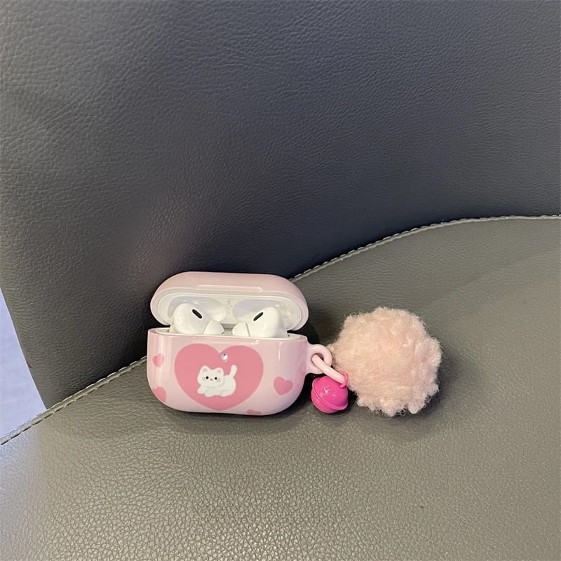 Heart Cat Apple AirPods / Pro Earphone Case Skin / Pom Pom Charm / Set