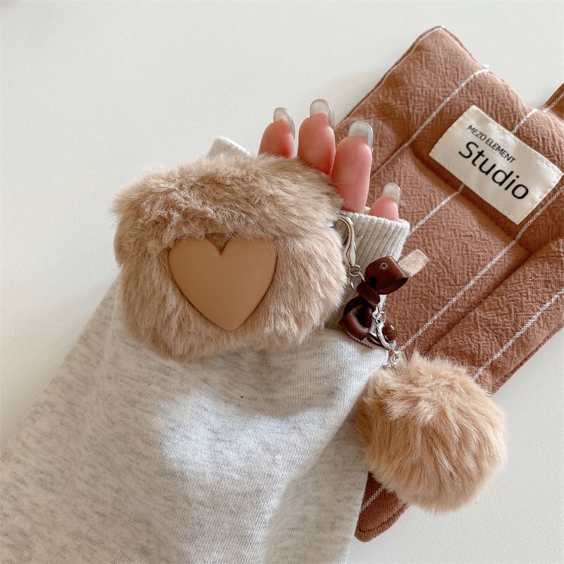 Heart Faux Fur Pom Pom Charm AirPods / Pro Earphone Case Skin